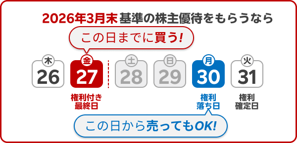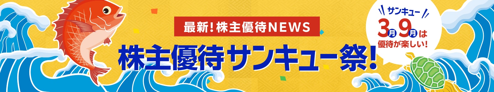 株主優待サンキュー祭!3月・9月は優待銘柄数が爆増! 毎年3月・9月は優待権利がもらえる銘柄が爆増! 思わず欲しくなる優待のラインアップや、優待銘柄の売買のコツを、プロと優待マニアが伝授します。 INDEX ▼ カレンダー 個人投資家オススメの優待銘柄 優待ランキング 優待名人・桐谷さんインタビュー 優待初心者が知っておきたい注意点 カレンダー 3月末基準の株主優待をもらうなら 3月27日(金)15時30分までに! 個人投資家オススメの優待銘柄 【3月株主優待:はるあきさん】夫婦投資家が厳選した「負けない優待銘柄」 トウシル編集チーム NEW 2026/3/3 【3月株主優待:カブ主優待ライダーさん】ピューロランド、ドーミーインを… トウシル編集チーム NEW 2026/3/1 【3月株主優待:ほっすんさん】コンタクト、家電、宿泊も!優待で楽しく節約 トウシル編集チーム 2026/2/28 【3月株主優待:りさぱんさん】家電、日用品、ご当地ギフトの優待を一挙紹介 トウシル編集チーム 2026/2/27 【3月株主優待:とことこトコタンさん】セキド、はるやま、AOKI HD… トウシル編集チーム 2026/2/26 優待ランキング 3月優待ランキング:10万円以下で買える!増配期待もできてお得な優待株 トウシル編集チーム NEW 2026/3/1 3月優待ランキング:節約に即・役立つ!継続保有条件なしの食品系優待株 トウシル編集チーム NEW 2026/3/1 3月優待ランキング:配当利回り4%超!好業績・高配当で優待も魅力的な割… トウシル編集チーム 2026/2/25 盛りだくさんの3月優待から厳選!優待弁護士が「本当に欲しい」期待の精鋭… 澤井 康生 2026/2/20 【2026年3月お宝株】優待マニアまる子さん厳選!株価好調でも割安優待… 優待主婦 まる子さん 2026/2/19 2026年3月の人気株主優待ランキング:NTT、トヨタ、オリエンタルラ… 福ちゃん 2026/2/10 【2026年4月株主優待】あさくまファームの優待券、伊藤園など優待マニ… 優待主婦 まる子さん 2026/2/25 【2026年2月株主優待】年間4万円分デジタルギフトも!かすみちゃん期… かすみちゃん 2026/2/23 優待名人・桐谷さんインタビュー 桐谷さんは年間30万円もらっている!?高配当&優待ダブルでおいしい銘柄… トウシル編集チーム 2025/9/13 桐谷さんお気に入り「おいしい優待」5選!MCJ・ウナギのかば焼き、東邦… トウシル編集チーム 2025/7/5 銘柄トークよりも面白い?株主優待名人・桐谷さん取材の「裏話」 トウシル編集チーム 2025/3/12 優待名人・桐谷さんが、トウシル読者の質問にズバリ回答![プライベート編] トウシル編集チーム 2024/12/15 優待名人・桐谷さんが、トウシル読者の質問にズバリ回答![投資の質問編] トウシル編集チーム 2024/12/14 優待名人・桐谷さんにインタビュー!#1「もらった優待、お気に入りベスト… トウシル編集チーム 2024/9/19 優待名人・桐谷さんにインタビュー!#2「パンパンの優待財布、中身を見せ… トウシル編集チーム 2024/9/19 優待名人・桐谷さんにインタビュー!#3「被服費ゼロ!桐谷さんの優待ファ… トウシル編集チーム 2024/9/19 優待名人・桐谷さんにインタビュー!#4「桐谷さんの自転車【優待号】を見… トウシル編集チーム 2024/9/19 優待初心者が知っておきたい注意点 こんな株主優待は危険!相場好調な時ほど気を付けたい「優待銘柄選び」の注… 西崎努 2026/2/25 株主優待:10万円以下で買える!自分に合う銘柄の見つけ方(窪田真之) 窪田 真之 2026/2/21 【投資クイズ】株主優待をお得に活用する方法は? 窪田 真之 2026/2/1 [動画]株主優待、オトク活用術を学ぶ【クイズでわかる!資産形成】 窪田 真之 2026/2/2 目指せ桐谷さん!株主優待だけで生活することはできる? みんなのマネ活 2025/9/14 優待品は「おまけ」、銘柄選びは業績重視で!株主優待、知っておきたい注意… 足立 武志 2025/9/11 優待を新設したての銘柄には落とし穴が?知らずにやってはいけない株主優待… 西崎努 2025/8/25 株主優待を廃止して配当金重視の流れ・個人投資家にとってプラス?マイナス? 足立 武志 2025/5/1 増える新設優待、それホントに大丈夫?いい優待、悪い優待を見抜くコツ トウシル編集チーム 2025/3/6 波乱相場×優待投資、損をしないための3原則! 西崎努 2024/9/13